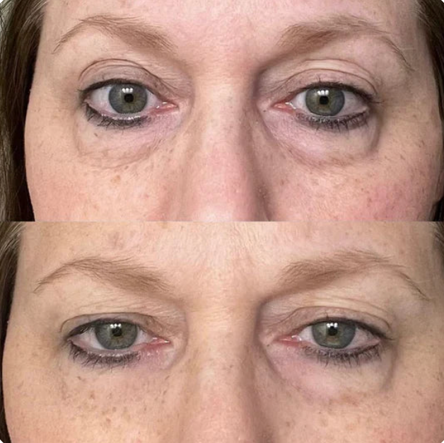 Poches lissées, regard lifté. En quelques minutes, la zone du contour de l’œil paraît plus ferme, plus nette et visiblement rajeunie.