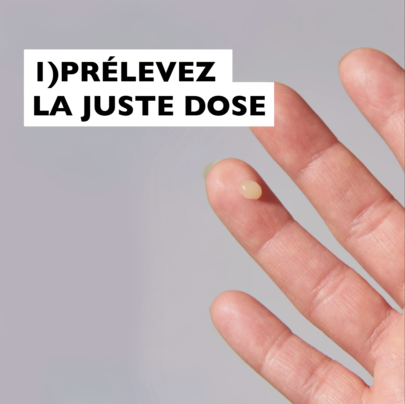 Une noisette suffit. Déposez une petite quantité sur votre doigt pour un contrôle précis et un résultat optimal.