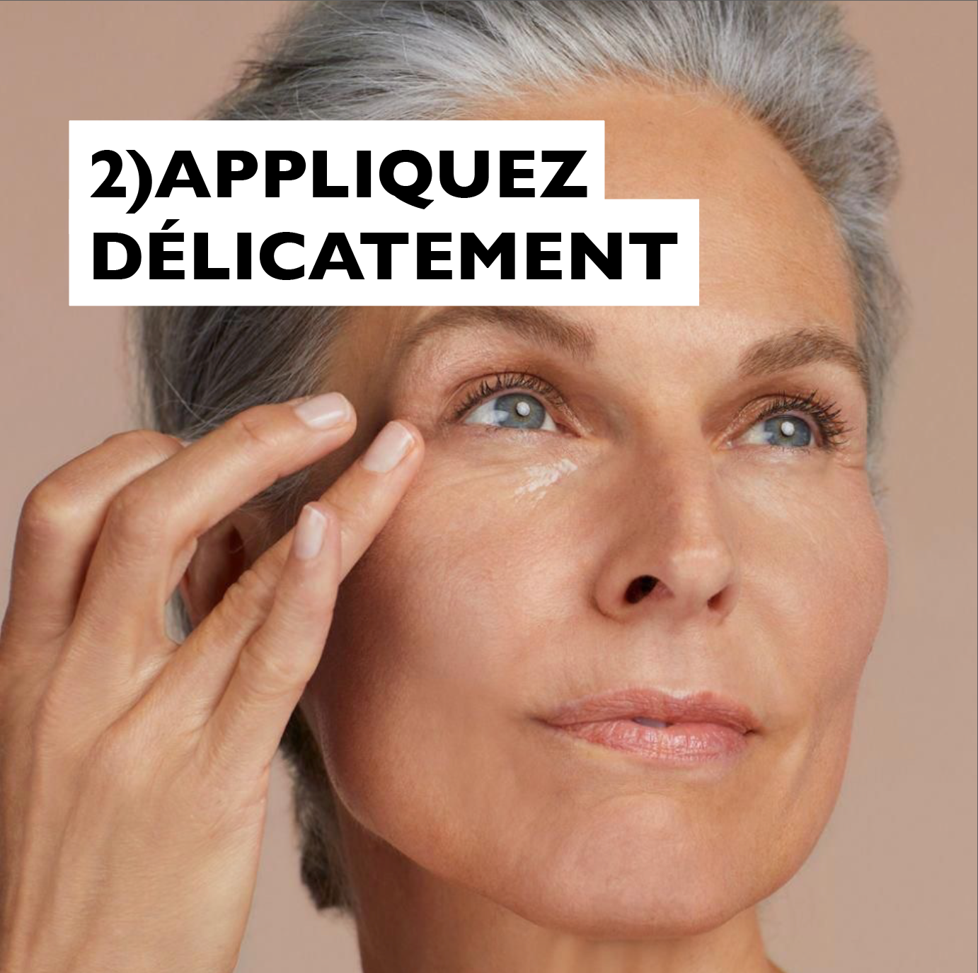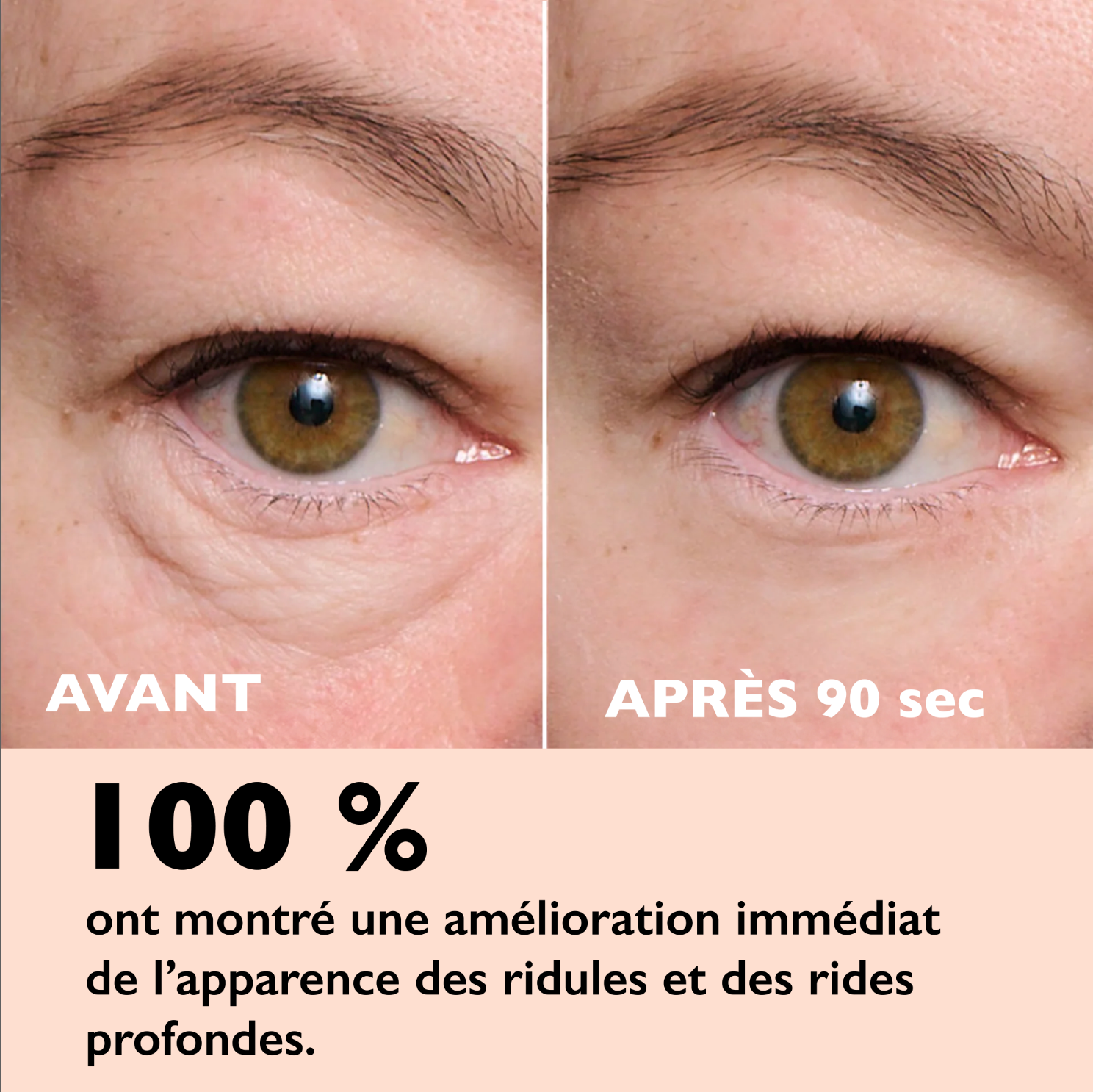 - Résultat dès la 1ʳᵉ application : efface instantanément les rides, poches et cernes